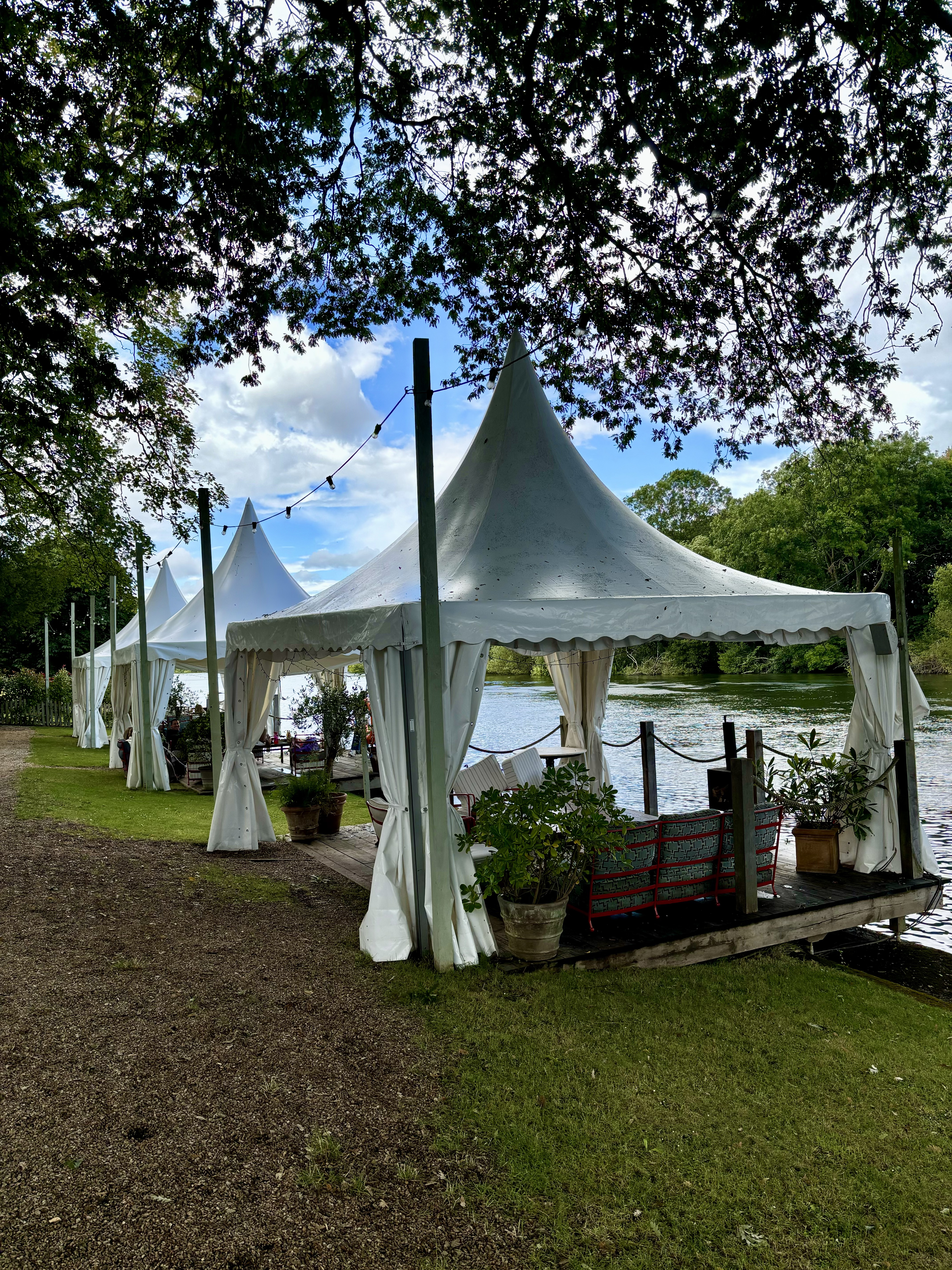 The River House, part of the SoHo House brand, which you access by walking across the garden has ample outdoor seating and a large covered bell tent. They had a fresh buffet salad bar (£35), pizzas and a pastas, fish dishes, burgers and pizza there was plenty of options. This place is amazing in the sun with a lot of seating areas available and live music.